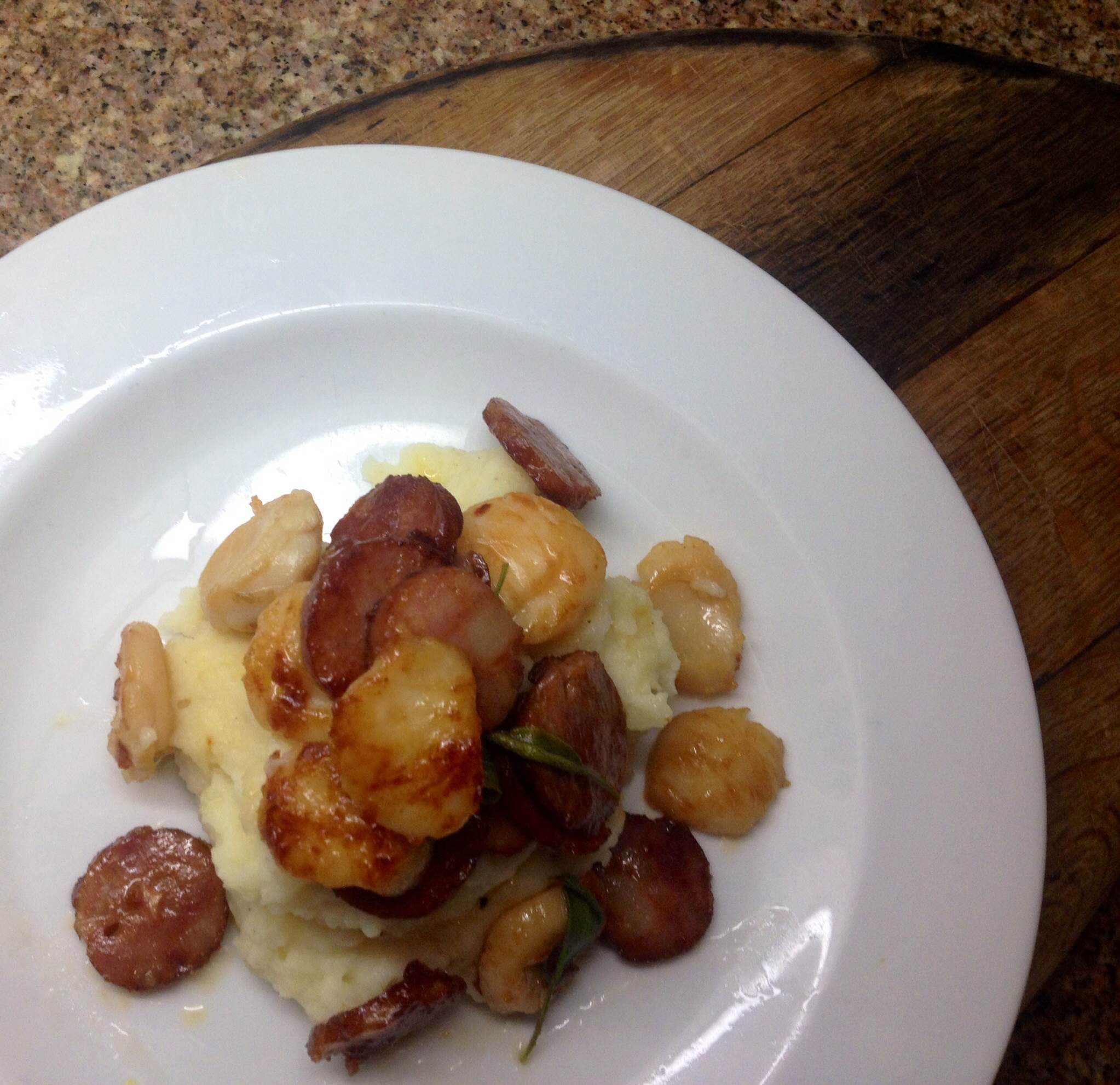 So this is the first time I have ever cooked scallops and chorizo, and luckily the home I am looking after had all the ingredients in their fridge. So, I decided to give it a shot. It was unbelievable, I cannot believe how beautifully the two ingredients go together. I decided to pair it with garlic mash potato.