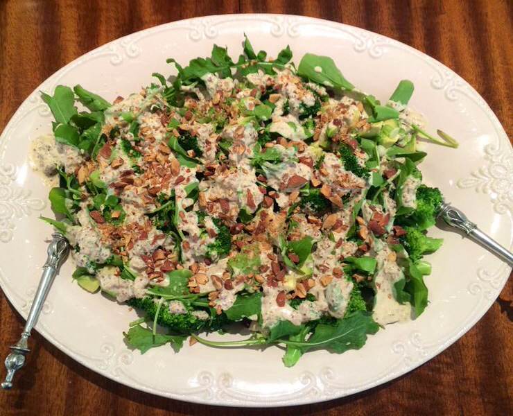 This is the most delicious salad, almonds in any form are heavenly, especially when they are roasted whole! It is so healthy and goes beautifully with any meal. You can add crispy bacon if desired. The salad dressing to die for, it is so deliciously creamy.