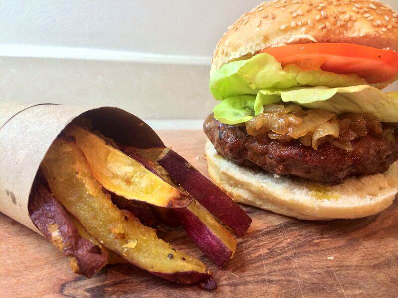 Homemade Burgers & Sweet Potato Chips