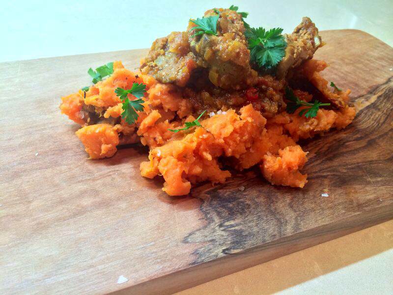 I have no clue why so many people don’t like chicken livers, they are so damn delicious and very good for you! They help fight stress, boost your immune system and help maintain healthy skin, hair and nails. AND they are cheap, but you have to buy free-range ones. I used sweet potatoes as a starch and I was so lucky to find Beauregard  ones, their orange colour is magnificent.