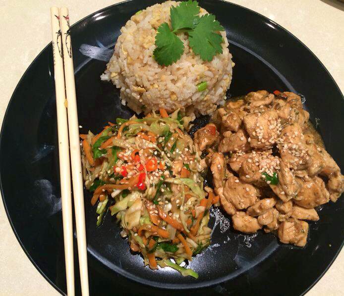 This is a relatively healthy dish, if you leave out the egg fried rice, but that would just be silly. Egg fried rice is so easy to make and the great thing is you can add anything you have in your fridge, I had spring onions and leeks, a weird combination but it was delicious.