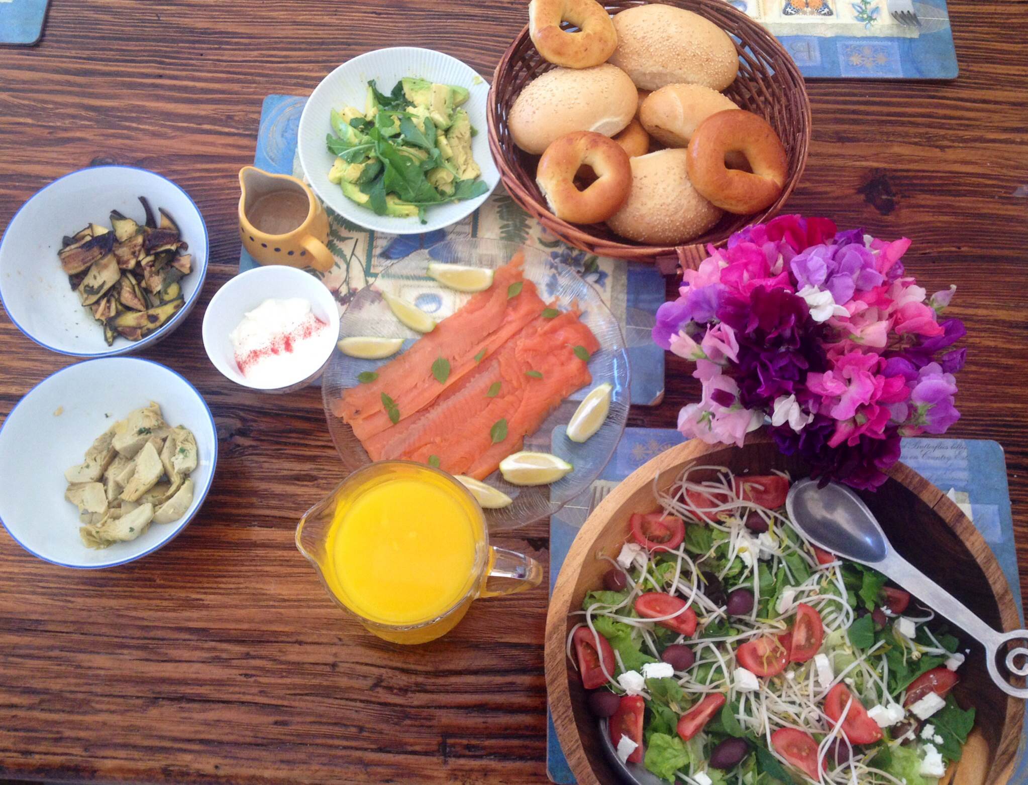 Sunday brunch in my family is a big occasion. After sleeping in, we visit our local bakery (Fournos) and splurge on the most delicious goodies; from freshly baked bagels and rolls, to smoked fish, marinated veggies and healthy salads. We also make our own fruit juice. Everyone in the family has their own little role, except for my mom she sleeps in. My dad and I do the shopping; my brother sets the table and my other brother makes the fresh fruit juice.