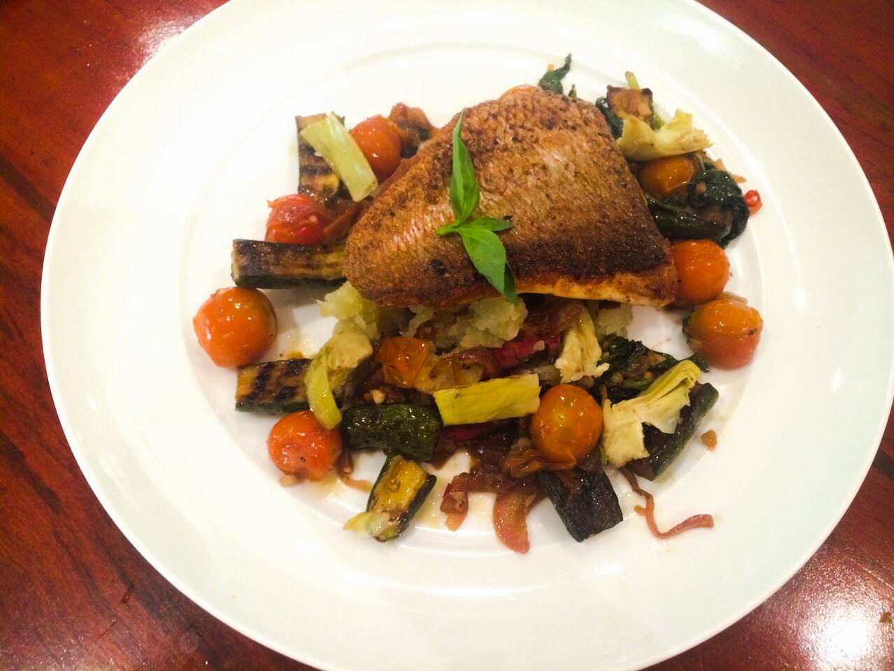 This dish is such a treat. It is so easy to make and is packed with so much flavour. I used red mullet but it also goes beautifully with red snapper.