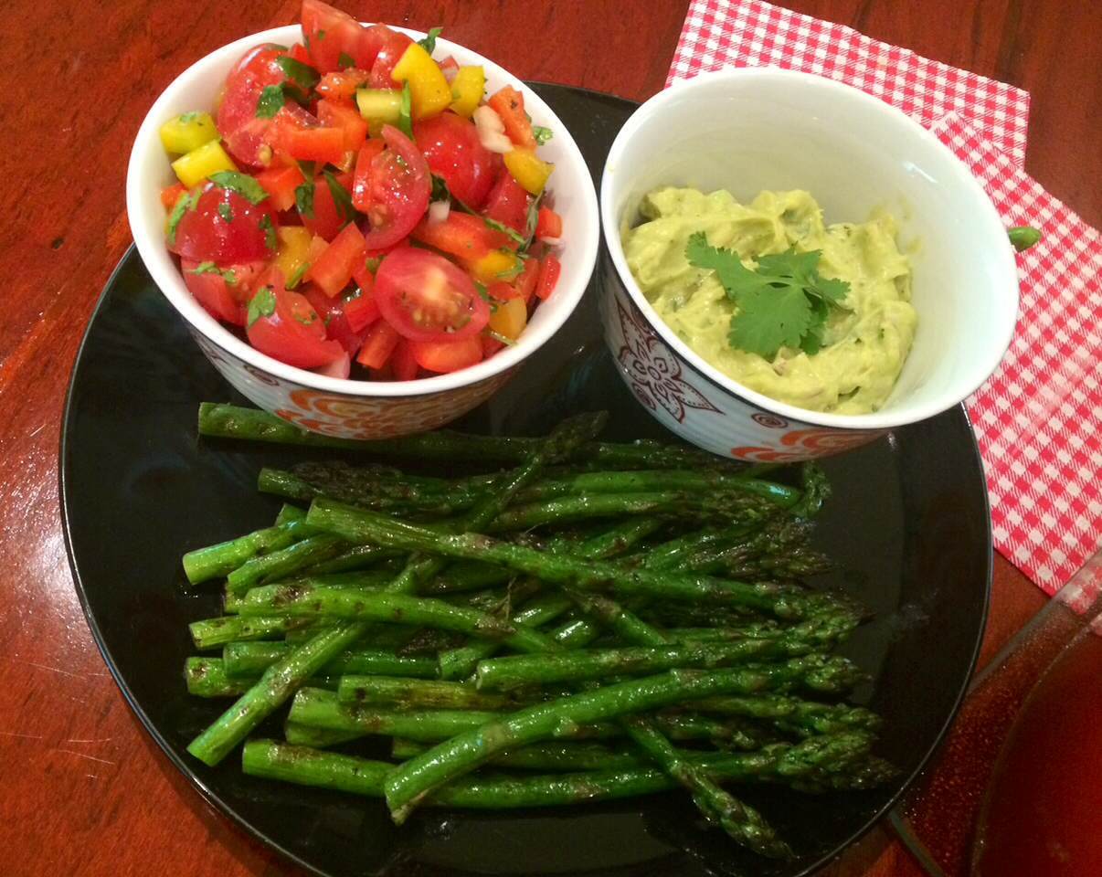 Now you ready to dish up, transfer the salsa and guacamole into pretty bowls, had the rest of the coriander leaves to the meatballs and you’re ready to serve.