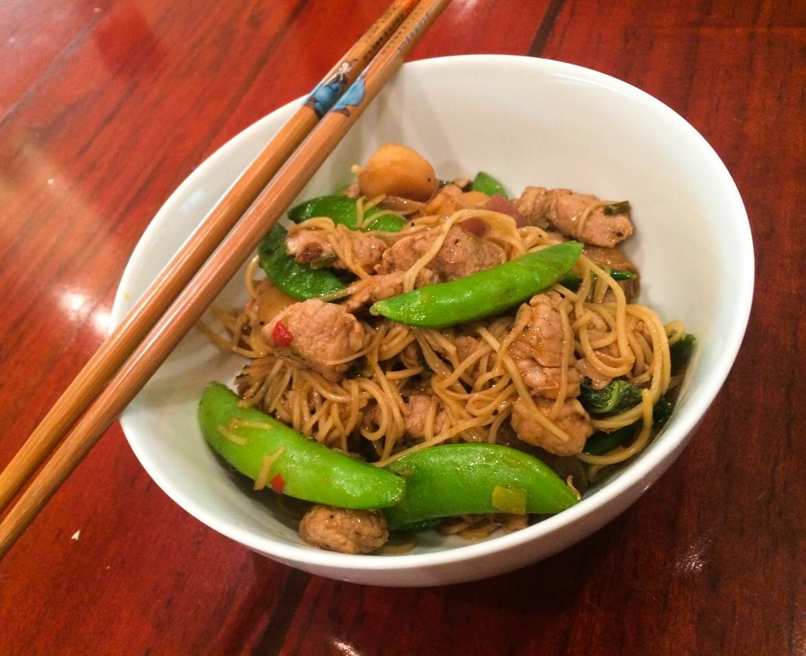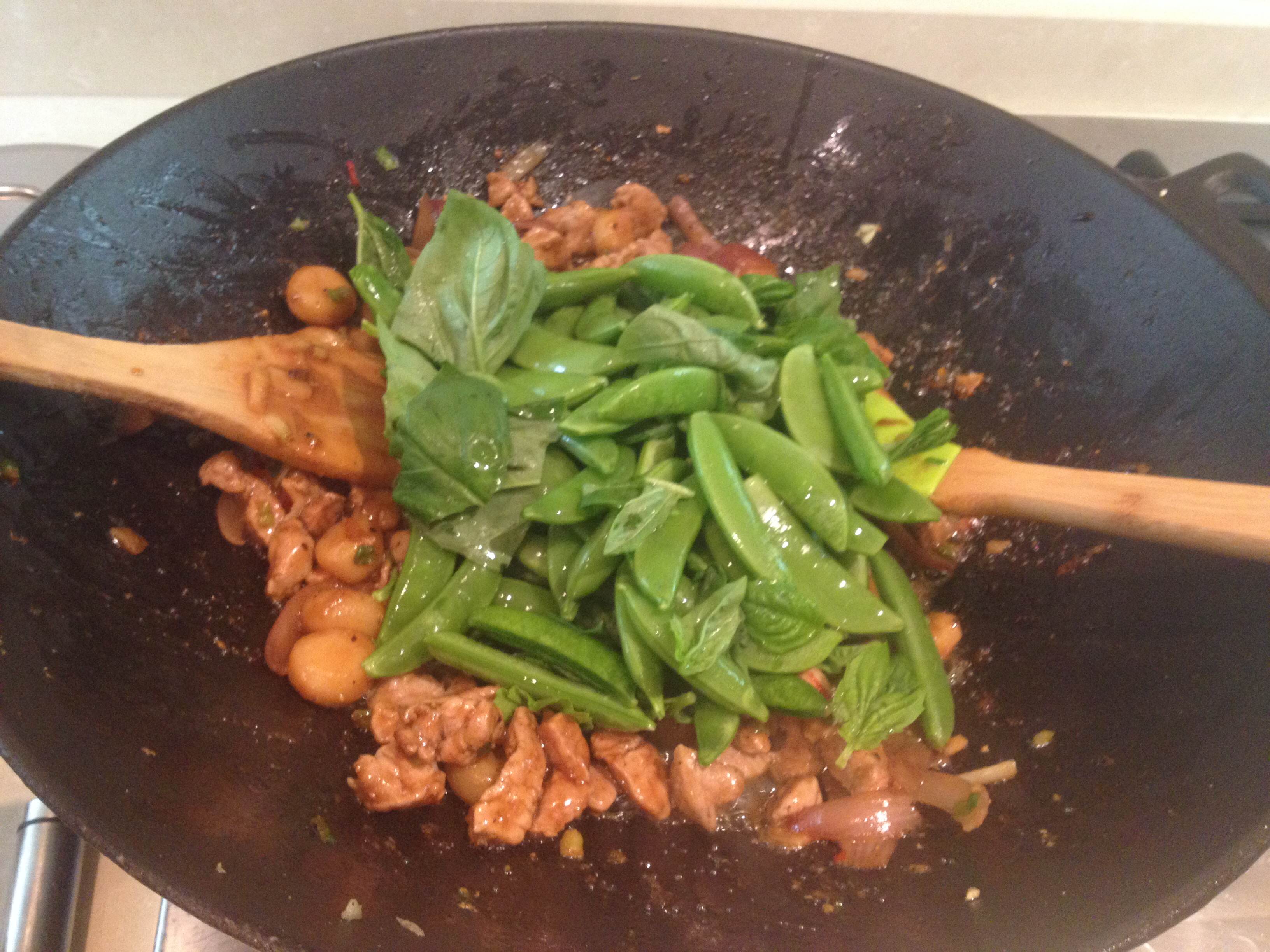 The most defining characteristic of Thai food is the balance of four characteristics: spicy, sour, salty and sweet. All dishes should include these four flavours in varying degrees of boldness. Another important characteristic of Thai food is freshness, adding fresh basil and sugar snap peas transforms this dish, it is vital to use an array of textures to improve your home cooking.  I used pork in this recipe but you can use chicken or leave it vegetarian.