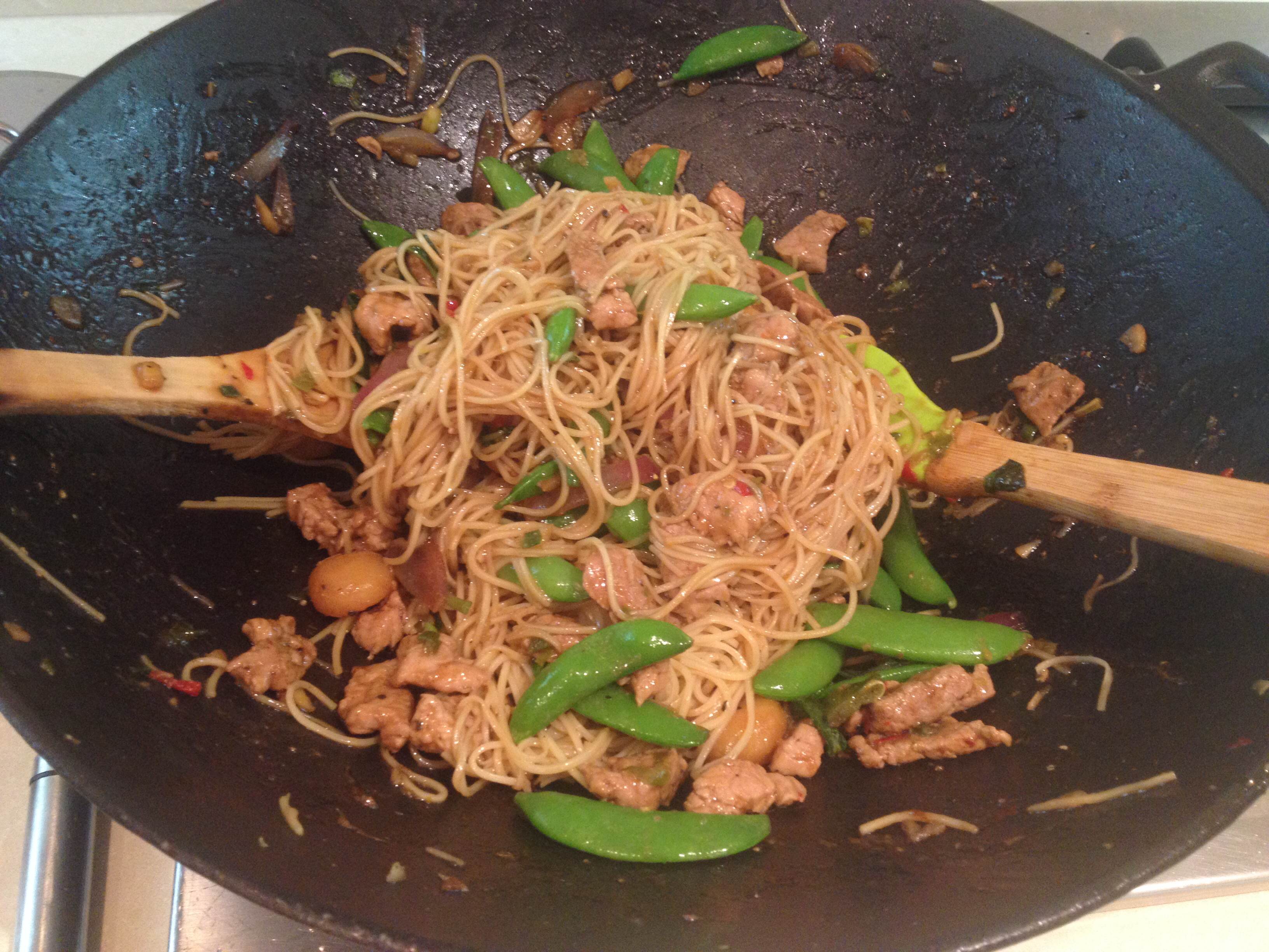 Add the noodles to the wok, toss and make sure there is enough sauce, if there isn’t add a bit more oyster sauce.