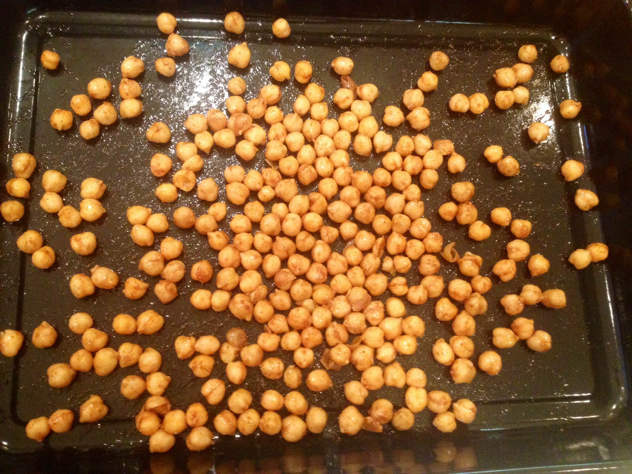 Rinse the chickpeas thoroughly and get rid of the excess water, then in a bowl mix together 2 tbsp of olive oil, the cumin, chilli powder, cayenne pepper, salt and pepper; then add the chickpeas and toss. Pour the chickpeas onto a flat oven tray, making sure they are spread out evenly. Place the tray in the oven with the beetroots and roast for a further 30 minutes.