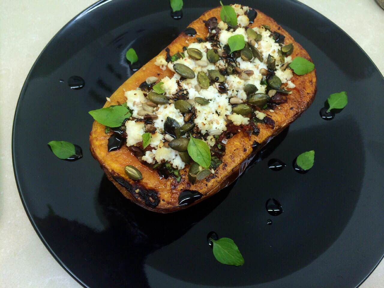 This vegetarian meal is one of the best I have ever tasted, I usually still crave meat after eating a veggie meal but this one hit the spot. The beautiful flavours from the sun-dried tomatoes go so well with the ricotta and balsamic crema. This dish does take some time  to cook, as butternut takes for ever to roast, but the results are SO worth it.