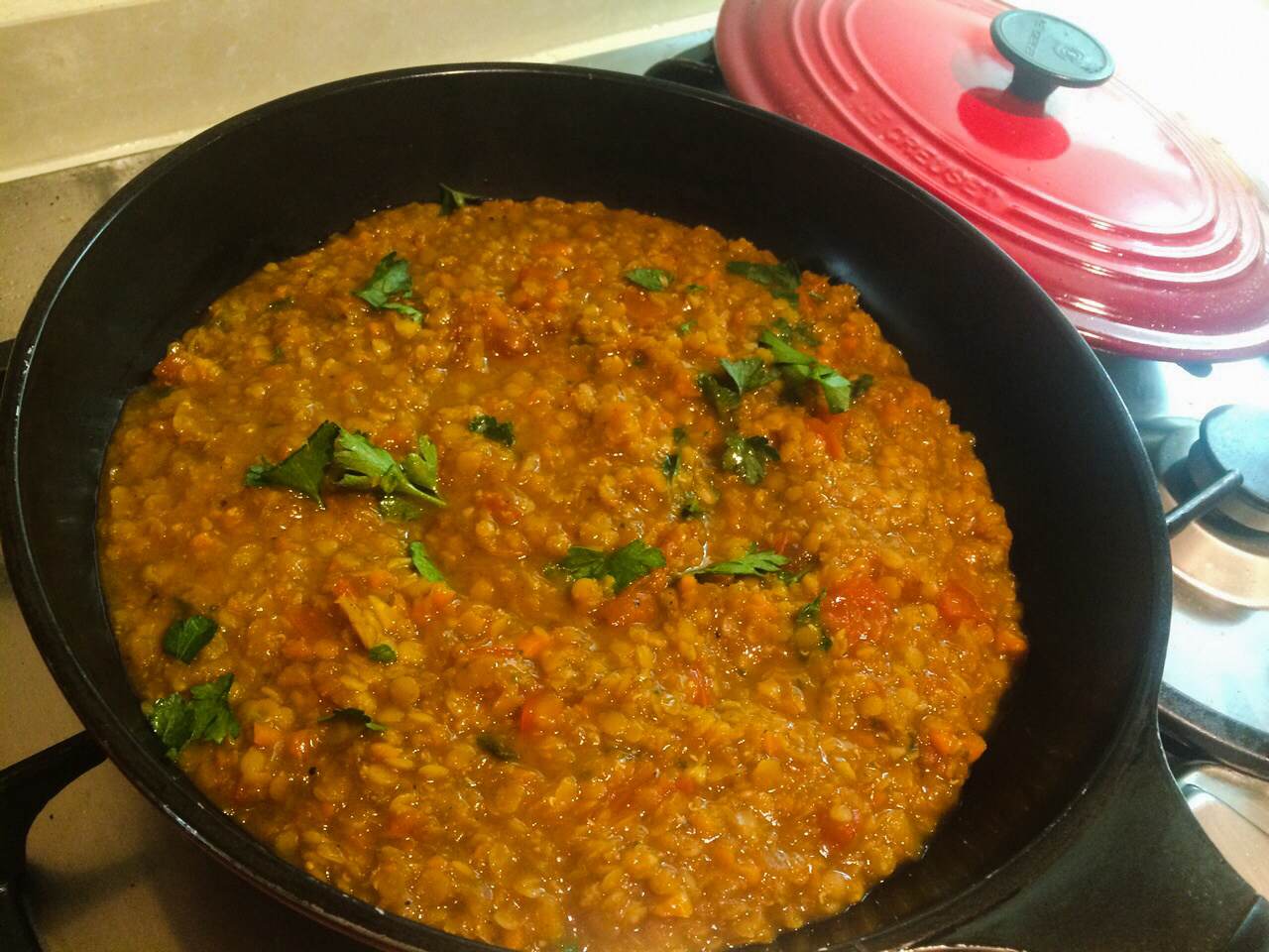 What makes this recipe Ethiopian is the spice mix, which is called Berbere. It tastes truly magical, and after reading up on it; I have learnt that no two Berbere mixtures are the same. It is a combination of wonderfully potent Moroccan food with a hit of garlic and chilli. In any Berbere mix there are a few constants: chilli, garlic, ginger and fenugreek. Spices I chose to add to the mix include turmeric, cinnamon, allspice, coriander and cumin. To go with the yummy chicken I made some hearty lentils and veggies. If you want to ditch the chicken, the lentils are an amazing vegetarian dish.