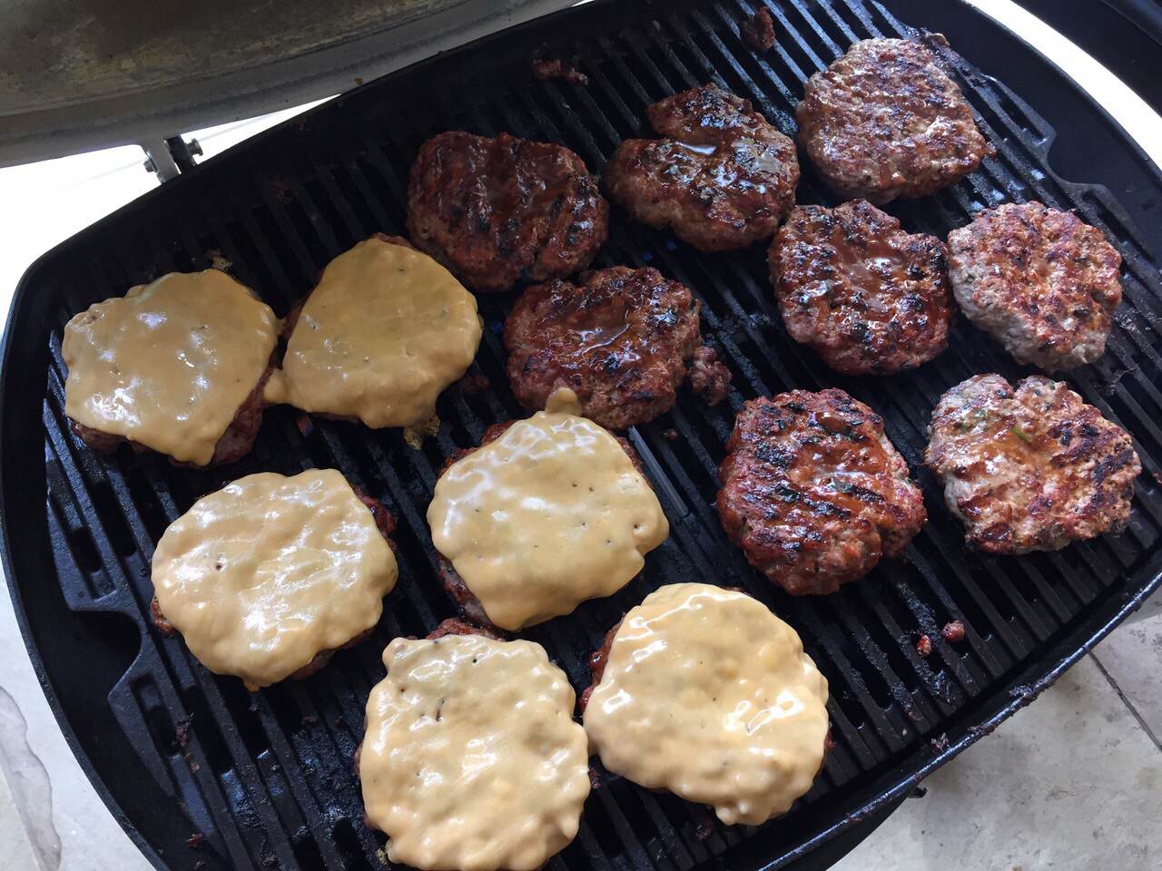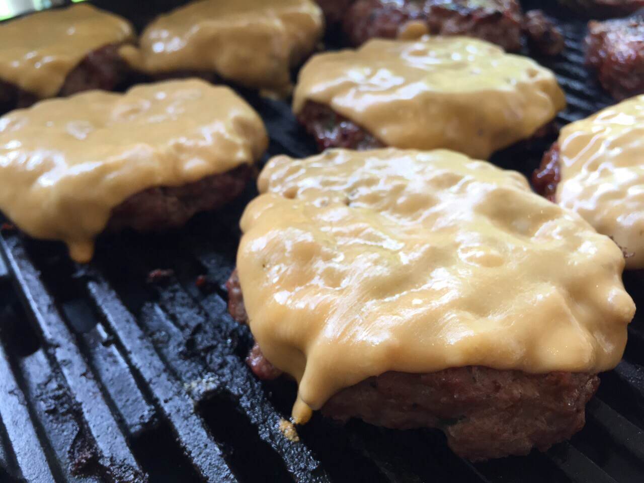 Turn the braai on it should reach 180°C.  Pour an adequate amount of BBQ sauce into a bowl with a basting brush and take to the braai, along with the cheese. Place all the patties on the braai and cook for 5 minutes on each side, after the meat is sealed, baste with the BBQ sauce until saucy. Turning every 30 seconds so the BBQ sauce can carameloze. Top with the cheese and wait for it to melt.