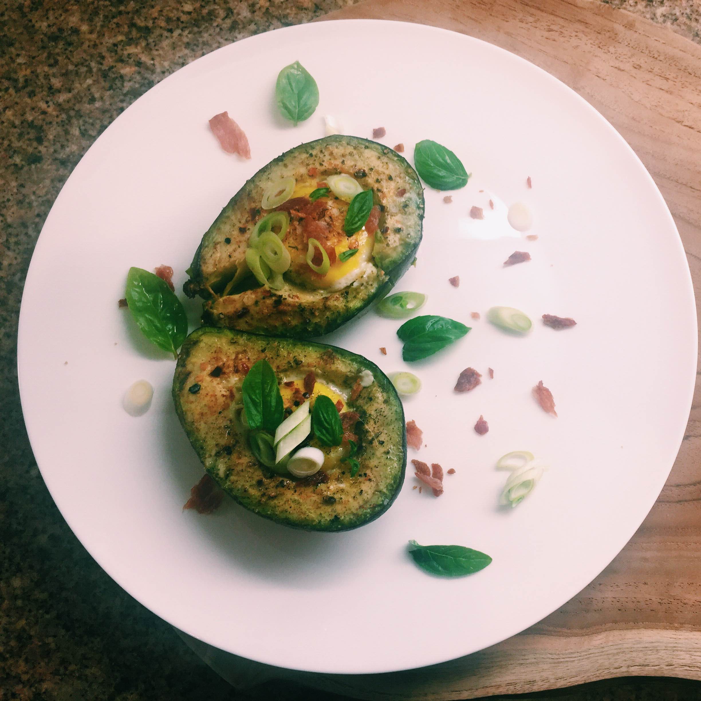 I made this for dinner last night with super crispy bacon and spring onions. One thing I did find is that it is very tricky keeping the yolks runny. If you have patience I’d take the yolk out and bake the white of the egg in the avo for 15 minutes and then add the yolk, I only realized after I had made them, but hey I’m always learning 😉