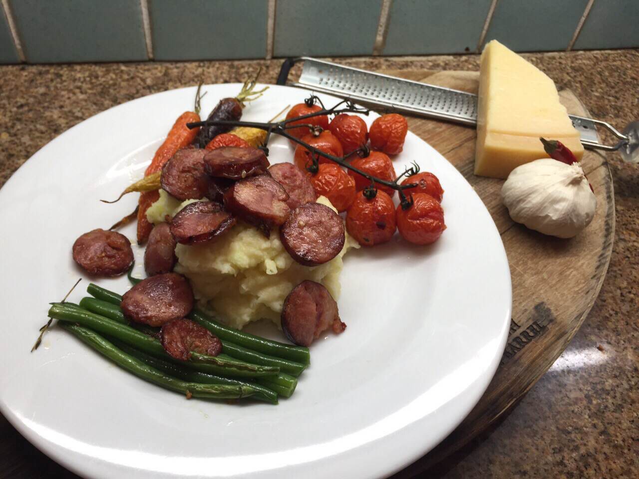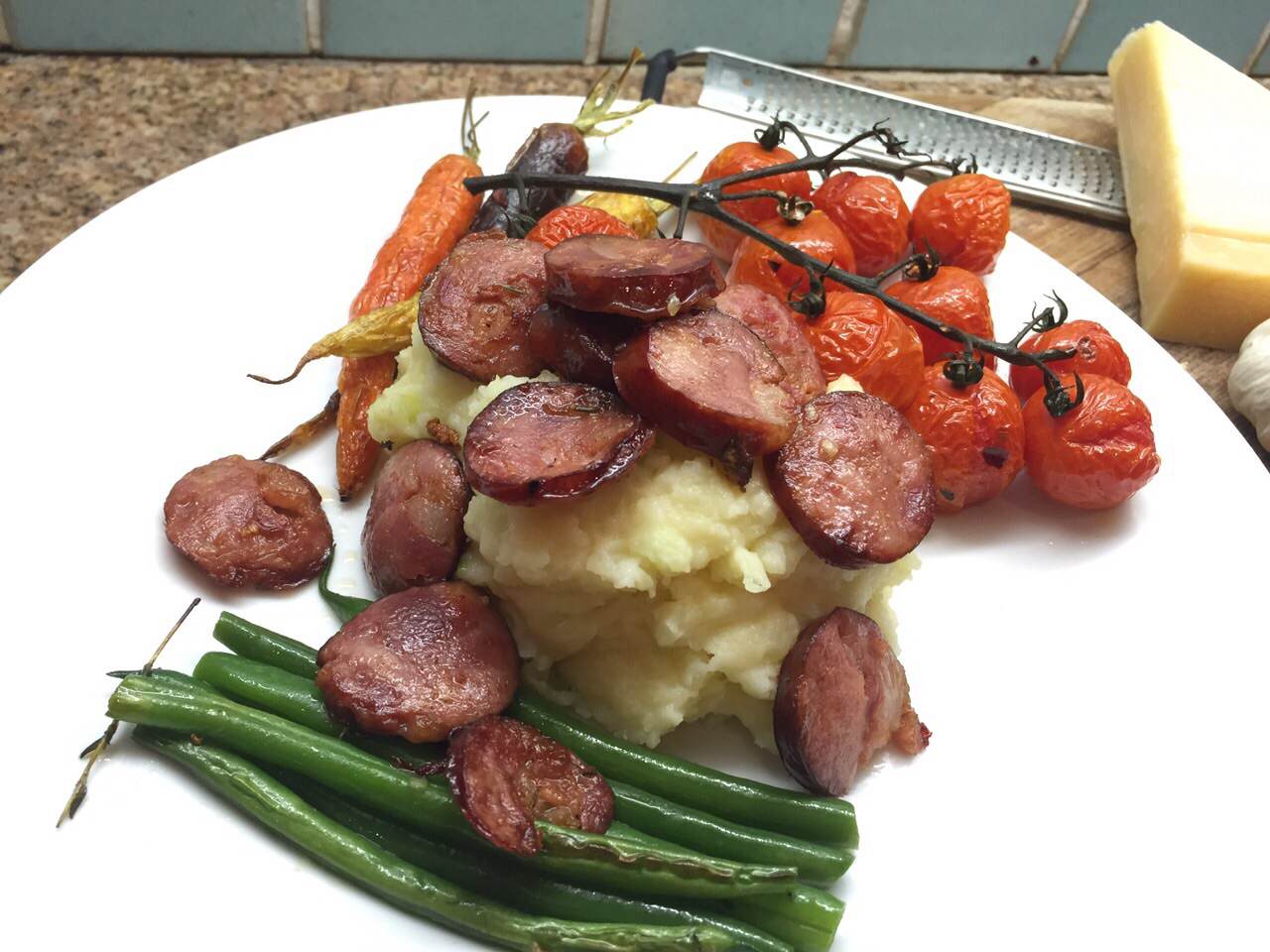 This is the most delicious Spanish meal and you don’t have to feel bad about eating sausage during the week as the beautiful rainbow carrots and vine tomatoes add a super healthy kick. If you don’t eat pork then you can substitute the chorizo with beef sausage or grilled chicken breasts. If you haven’t eaten rainbow carrots then you’re in for a treat, they are so deliciously sweet, you can find them at any Woolworths 🙂